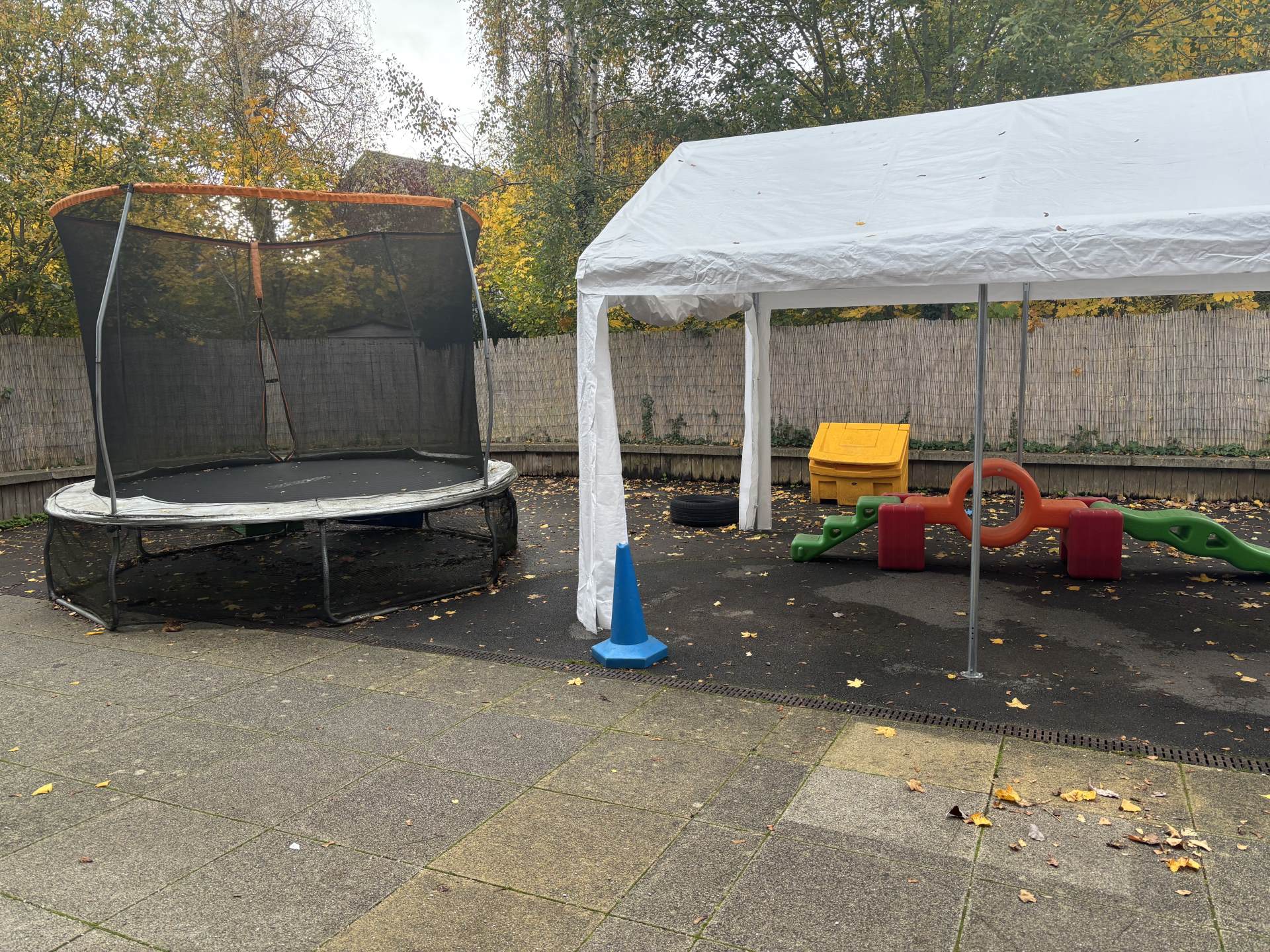 The outdoor area is a space shared with our friends in Indigo Class, we enjoy spending playtime with them. It also provides a space for learning outside, we particularly enjoy phonics and mark making in this space.